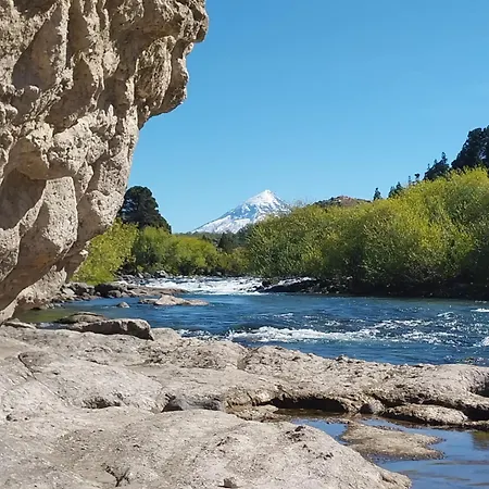 The 1-bedroom Entre Nubes Junin de los Andes villa offers proximity to nearby tourist spots, such as Chimehuin River, situated about a 25-minute stroll away.